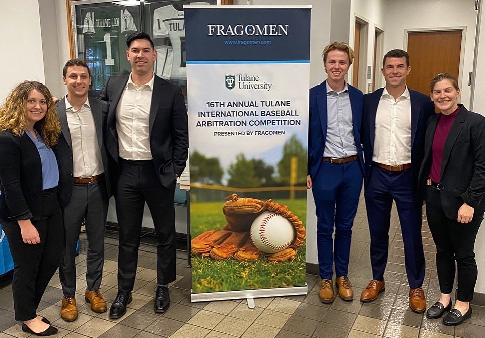 In January, Villanova Law sent two teams of students to compete in person for the first time since 2019 at the 16th Annual Tulane Baseball Arbitration Competition from January 19-20. Out of 37 competing teams, both advanced to the playoff rounds and finished in the top eight. The team of Matt Dacey ’23, Andrew Delzotto ’23 and Alex Shaff ’24 finished as semi-finalists. In addition, the team of David Brake ’24, Stella Pratt ’23 and Chris Roppolo ’23 were quarterfinalists and won the competition’s Written Advocacy Award. This year marked the fourth straight year that Villanova Law students advanced to the competition’s playoff rounds and the third time in four years that one of the teams has made the semi-finals.